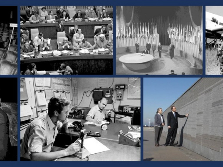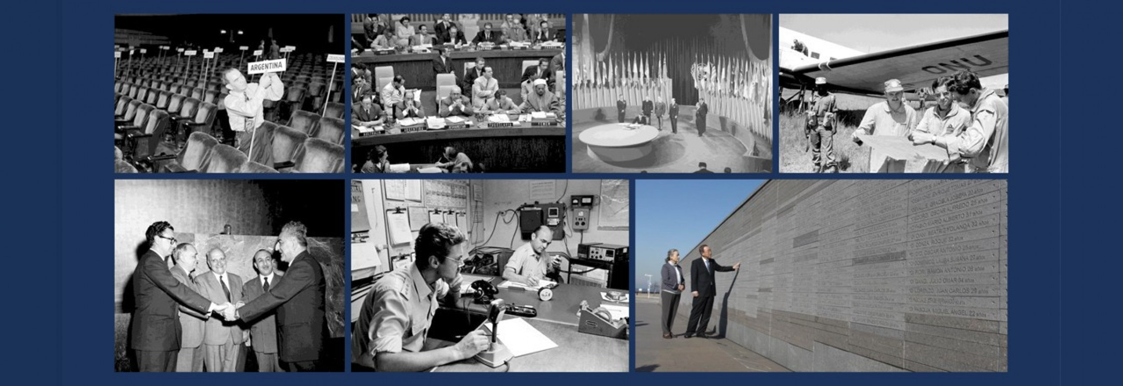 La exhibición, que cuenta con 39 fotografías, expone momentos históricos trascendentes en el vínculo entre la República Argentina y la ONU, incluyendo la participación argentina en la redacción y ratificación de la Carta de las Naciones Unidas, así como algunos de los principales proyectos que Naciones Unidas ha llevado adelante en el país.