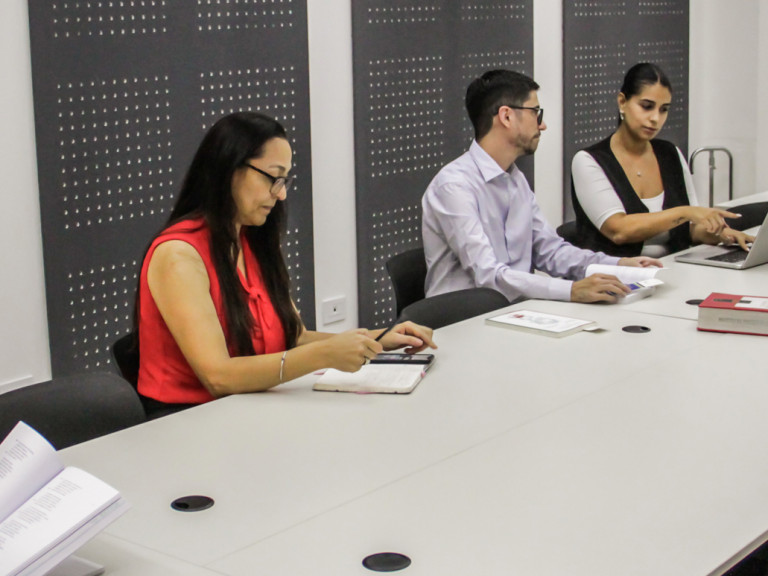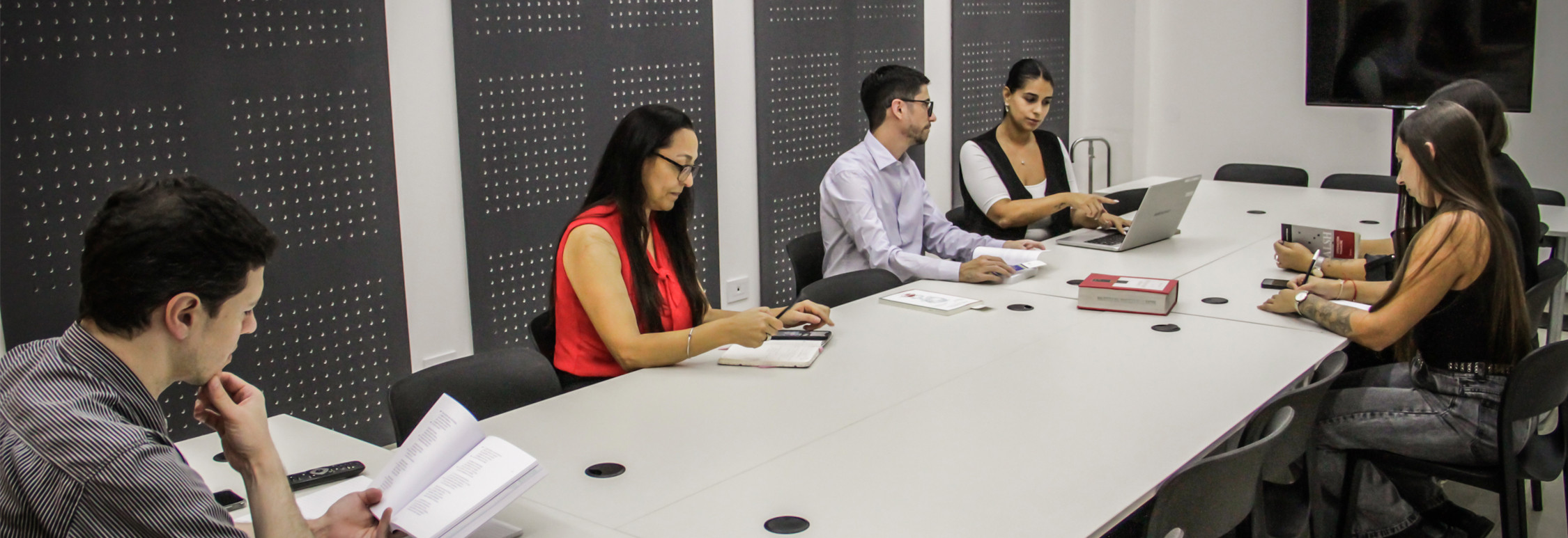 A diferencia de los sectores de uso silencioso de la Biblioteca, en este espacio se permite conversar y trabajar en equipo. Está especialmente destinada al estudio grupal, reuniones y desarrollo de proyectos compartidos.